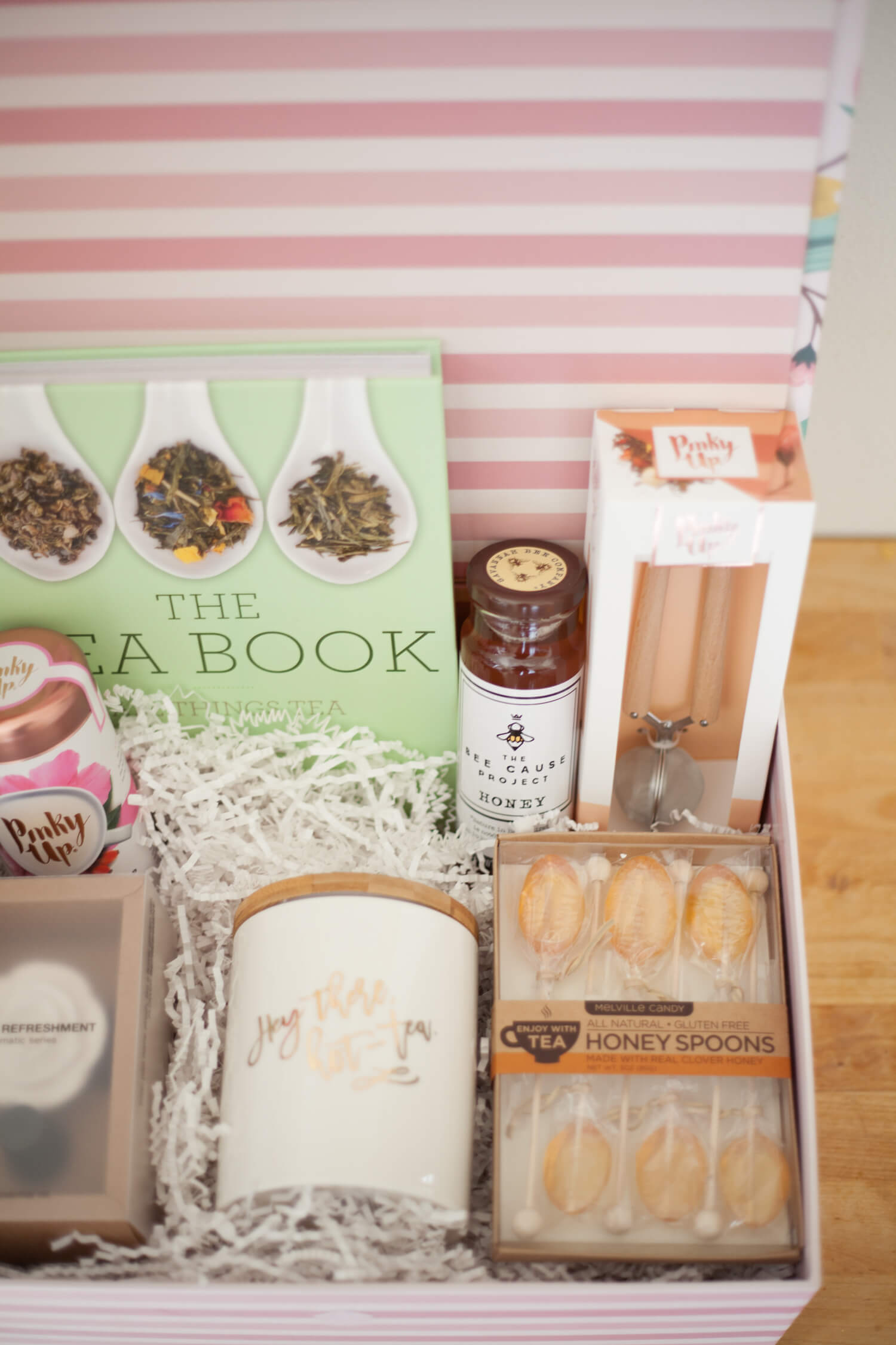 For the tea enthusiast, this basket has it all. Tea, a loose-leaf spoon, a cute essential oil diffuser, honey spoons, and even an entire book about tea! I have to say that my favorite thing is this “hot-tea” tea canister… it’s so quirky and cute, and it’s sure to provide a laugh or two for guests.
